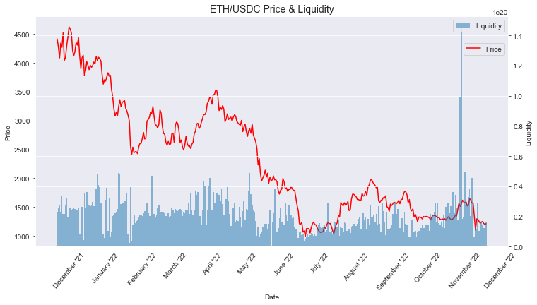 Price is the simple one, but since we're experts at the “liquidity” value from our previous math lessons we can also see current liquidity granularity as well as historical liquidity. Having this historical liquidity we can make better estimates about future yields by making more accurate backtests.