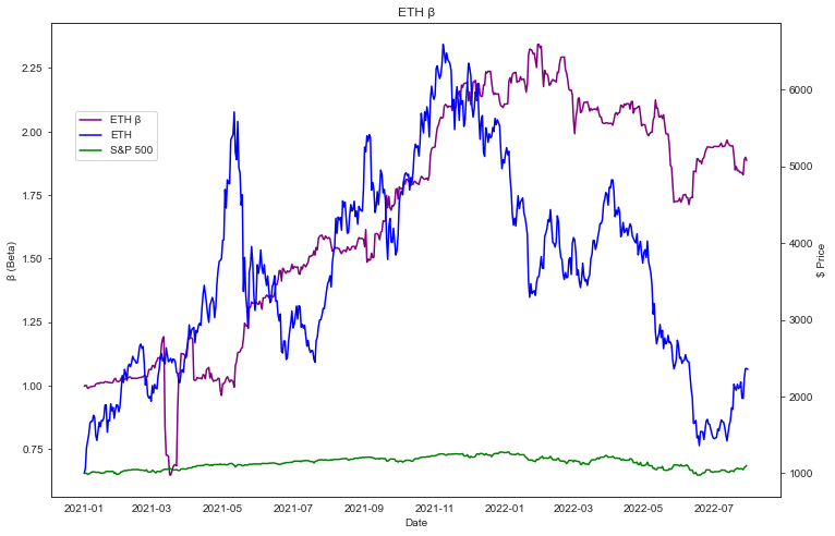 A much higher Beta, but much higher returns too! Now does that mean ETH is riskier than BTC? Maybe. Maybe not. Maybe its returns will continue to be much higher to justify that "risk."