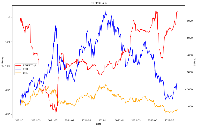 And that's just what we got. A Beta that hovers around 1 showing that the two have very similar variances. We also see ETH has higher returns, and with a Beta of 1 that would produce pretty high measurement called "Alpha" which is a term no one on crypto twitter has ever heard; but I'll cover that in another post. 🤫